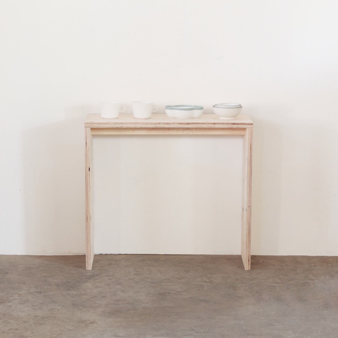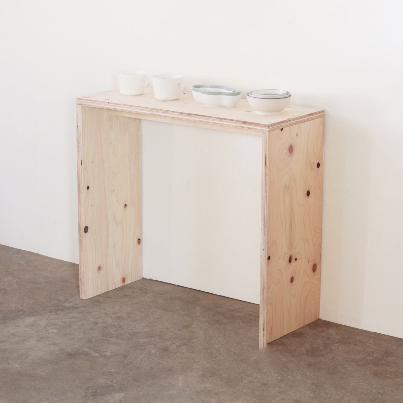 構造用合板の素材感を最大限に活かしたディスプレイテーブルです。
